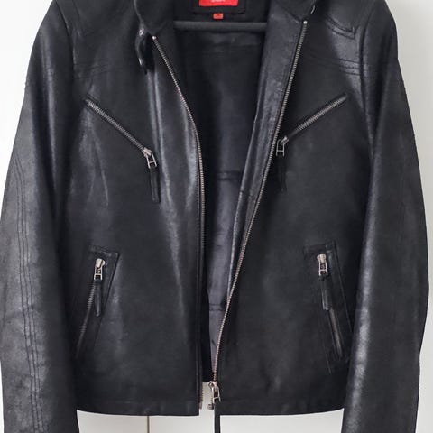 Aitoa nahkaa uudenveroisessa kunnossa oleva naisten takki.