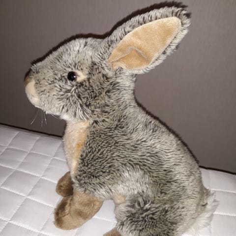 Iso ruskea rusakko pehmolelu. Kotimainen Vivantti merkkinen. Korkeus n. 30 cm, pituus n. 35 cm. Hyväkuntoinen.