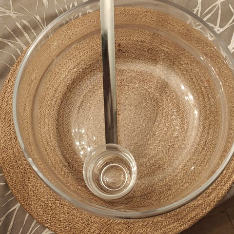 Iittala Paula boolikauha metallikahvalla ja lasinen kauhaosa. Sopii esimerkiksi keittiökäyttöön ruoan annosteluun. Kauhan muotoilu yhdistää lasin ja metallin, mikä tekee siitä kestävän ja käytännöllisen. Jorma Vennolan Iittalalle suunnitteleman Paula-sarjan boolikauha teräksisellä varrella.