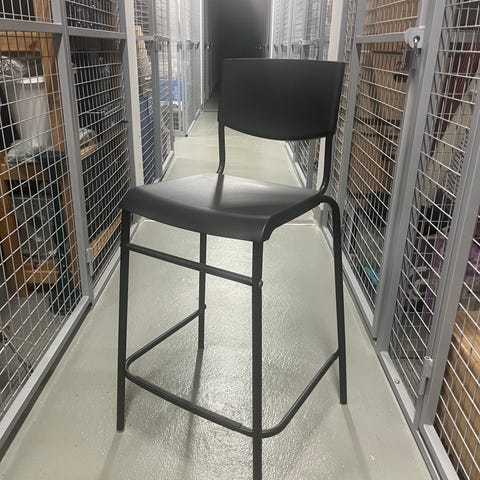 IKEA Robert Dudley Best jakkara, jossa valkoinen istuin ja metalliset jalat. Jakkara on suunniteltu kestämään enintään 100 kg:n painon. Sen muotoilu on yksinkertainen ja toimiva, soveltuu erilaisiin tiloihin ja käyttötarkoituksiin.