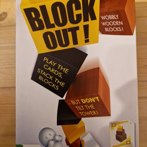 Block on Block -palikkapeli, jossa ilman pattereita toimiva alusta, jolle kootaan palikoita vuorotellen alustan ilmoittaman värin mukaan. Jos toimii liian hitaasti, alusta sinkoaa palat ilmaan. Voi pelata tai koota rakennelmaa myös itsekseen ja sitten ”räjäyttää” sen ilmaan. Lapset rakastavat tätä:)