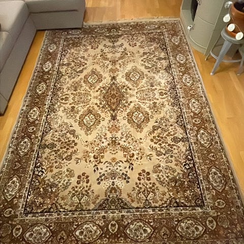 Marseillen matkalta 1kk sitten ostettu itämainen matto. Ei ole käytetty kuin kerran olkkarin lattialla ja todettu liian isoksi.
