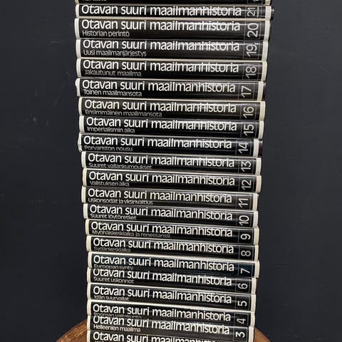 Myydään Otavan suuri maailmanhistoria kirjasarja. Yhteensä 22 kirjaa. Viimeinen kirja on historian kartasto joka sisältää yli 100 karttaa. Keuruu 1982. Kirjahyllyssä aina säilytetty.