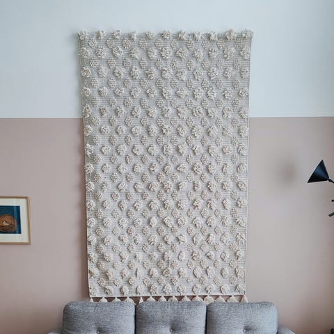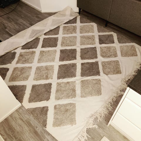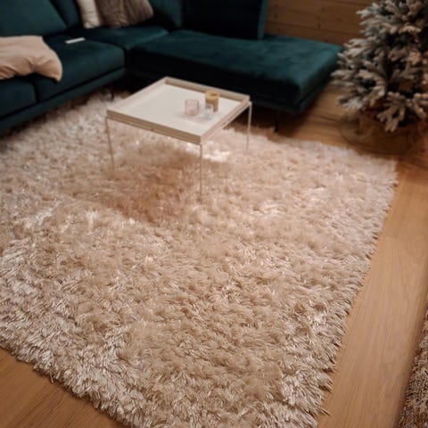 Hakusanat: puuvillanukkamatto karvalankamatto matto iso matto boho vaalea paksu olohuoneen ryijy ryijymatto