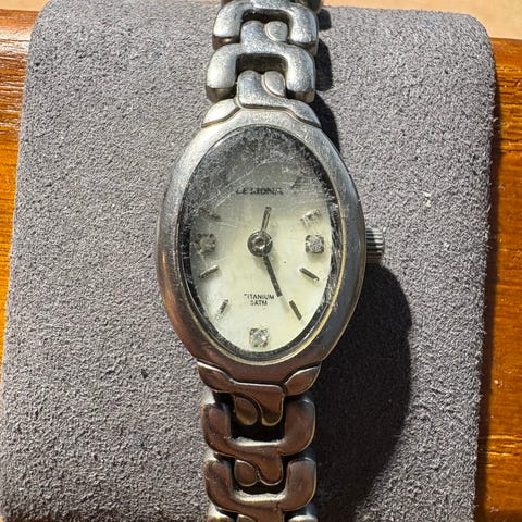 Myydään kevyt ja kestävä Leijona Titanium 3 ATM -rannekello. Tässä mallissa on kokonaan titaanista valmistettu runko ja ranneke, joten kello on erittäin kevyt käytössä eikä aiheuta nikkeliallergiaa. Kellossa on siro ja pelkistetty ulkonäkö, joka sopii niin arkeen kuin siistiin pukeutumiseen. Kello on käytetty ja siinä on selviä käytön jälkiä, mutta toimii normaalisti. Mukaan tulee yksi lisäpalikka rannekkeen pidentämistä varten.