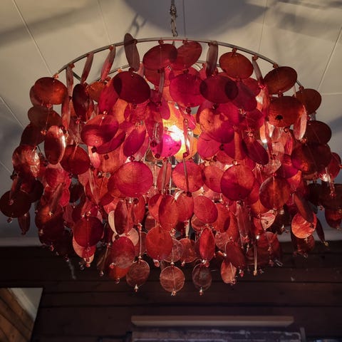 Kuvan huippukuntoinen kuparista tehty kattovalaisin neljällä valolla. suunnittelija aimo tukiainen, toimiva valo. postitus 10,90e