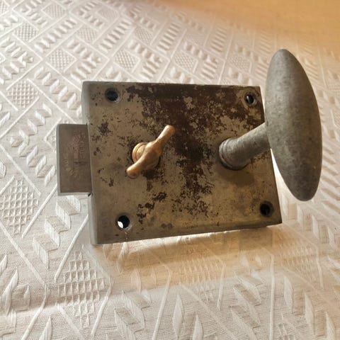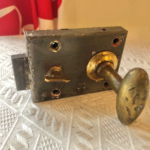 Iän mukaista kulumaa ja käytön jälkeä, avainreiästä tuleva "tukiputki" heiluu.