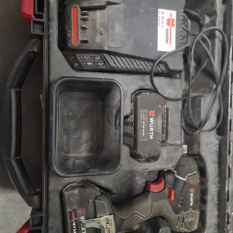 Kuvan käytetyt wurth akkukoneet settinä. Sds poravasara, laturi, akut 3.0 ja 4.0Ah ja pulttipyssy 1/2 kiinnityksellä. Käy myös normaali biz kärki tähän pulttipyssyyn.