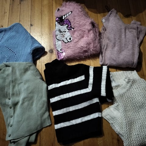 Pari paitaa isompaa kokoa, 146-152cm, mutta käytetty yhtäaikaa pienempien kanssa.
