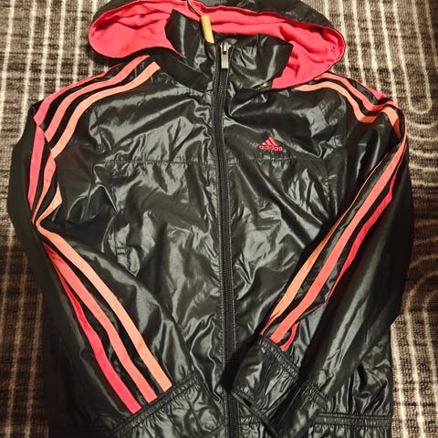 Myydään Adidaksen tuulitakki. Vähän pintynyttä likaa vaaleassa kohdassa (saattaa lähtä pesussa, kun huomasin vasta kuvatessa) Muistaakseni jossakin kohtaa pieni reikä paikattu muttei sattunut nyt kyllä silmään
