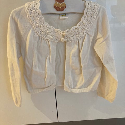 Myydään kaunis valkoinen Kinderit-bolero koko 90 cm. Reunoilla kaunis helmikoristelu. Kunto hyvä, ei tahroja. Ollut hyvin vähällä käytöllä, vain juhlissa. Yksi helmi puuttuu viidestä helmestä toisesta hihansuusta, mutta se on käden ”sisäpuolella”.