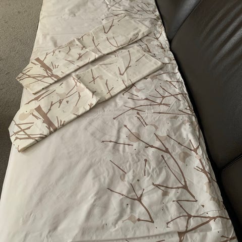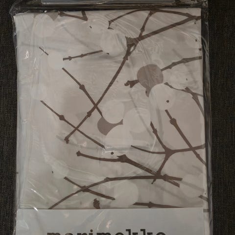 Myydään kahdet uudet ja edelleen paketeissaan olevat Marimekon Lumimarja-sarjan vuodevaatesetit. Yhdessä setissä pussilakana (150 x 210 cm) ja tyynyliina (50 x 60 cm).