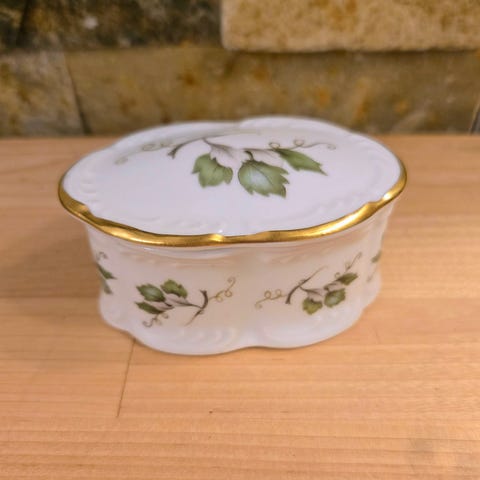 Vintage, munan muotoinen posliinirasia Vienna Woods Fine China, hyvin siisti.