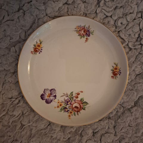 Tätini jäämistöä Arabia kesäkukka astiasto. Keittokulhon reunassa kaksi pikkupalaa pois. Muuta en huomannut. Saa tulla Tre katosomaan.