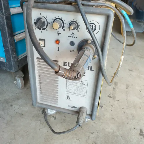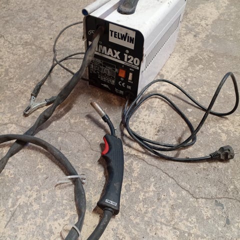 Herkules HSG 190 D hitsauskone, jossa säädettävät ohjaimet ja liitännät. Käytetty laite, sopii hitsaustöihin.toimii verkko sekä voimavirralla.