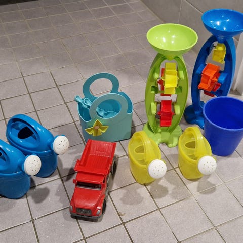 Auringonkukka-keppisateenvarjo. Yksi metallinpätkä puuttuu, muuten ehjä.