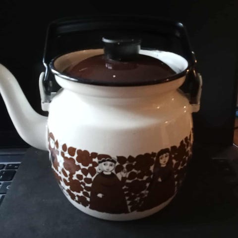 Kulhon muodon on luonut Kaj Franck, ja "Ritari" (Knight) -kuvion on suunnitellut Esteri Tomula tai Raija Uosikkinen.