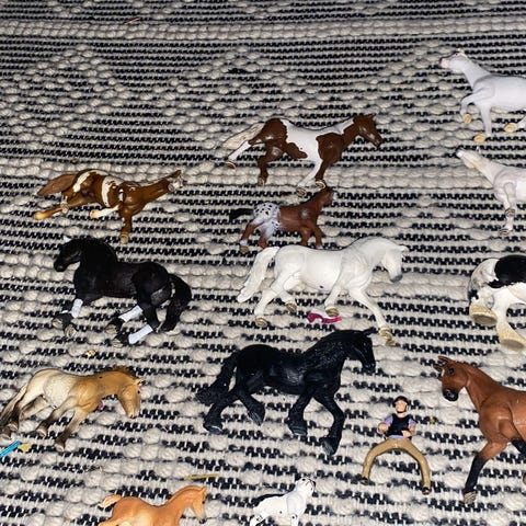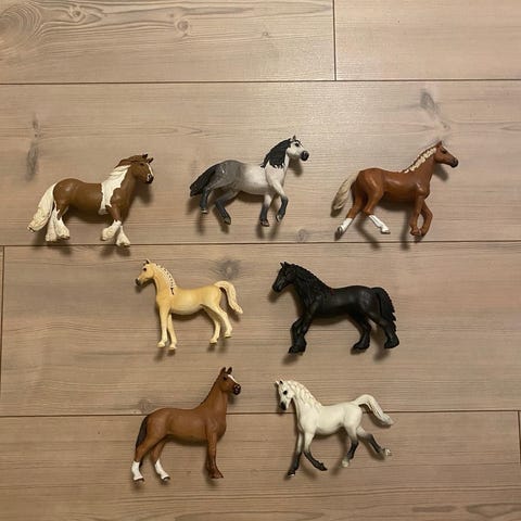 Halutaan ostaa schleich hevosia,ratsastajia sek ä varusteita. Pienet viat ei haittaa,käytön jälkeä saa olla.