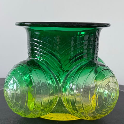 Hyvässä kunnossa oleva 70 luvun desing esine . kuvissa mitan numerot ei näy mutta kork .noin 15 cm ja halk. noin 18 cm