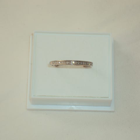 Myydään 14 karaatin valkokultaa oleva Timanttisormus. Sormusta kiertää neljä riviä timantteja, joista kaksi keskimmäistä on korotettu. Koko : 18,5 . Paino : 5,22g. Asianmukaiset leimat, 585 ja valmistajan leima. Joensuu. Vain Nouto tai Postiennakko.