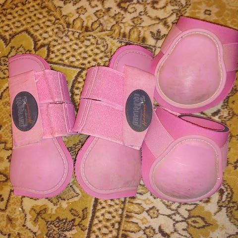 🔸️Tummansiniset (glitter/bling) koulusuojat, etusuojat uudet käyttämättömät koko s/pony ja takasuojat siistit vähän käytetyt koko cob/m sekä samaan settiin kuuluvat uudet käyttämättömät putsit koko m, hp. 55e/koko setti