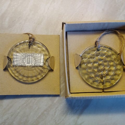 Nämä ovat tehty muutama vuosi sitten. Alkuperäisessä pakkauksessa on kaksi kappaletta Marimekon punaista joulukoristetta.