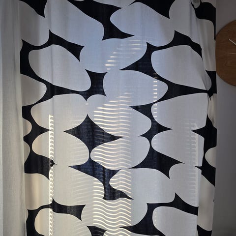 Myydään 2kpl ihania, hyväkuntoisia Nanso (Arkismi?) valmiita verhoja, yhden verhon leveys 135 ja pituus 230 cm. Väri metsänvihreä mustin tehostein.