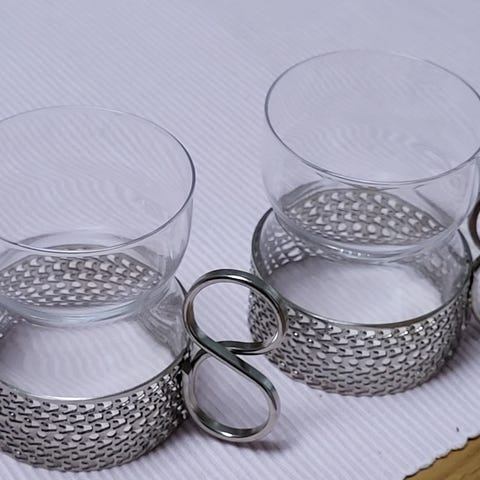 Myydään 2 kpl käyttämätöntä Tsaikka glögilasia, koko 23 cl. Laseissa kullatut pidikkeet. Hinta yhteensä.