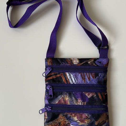 Käsintehty hieno kännykkäpussi, lankana käytetty Novitan kierrätettyä puuvillalankaa