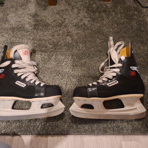Bauer jääkiekko luistimet lasten koko 23. Luistimissa on musta ja harmaa väritys, ne on suunniteltu jääkiekon harrastamiseen. Luistinten pohjallinen 23 cm. Soveltuu lasten käyttöön. Terätkin on jopa kanttien osalta terävät.