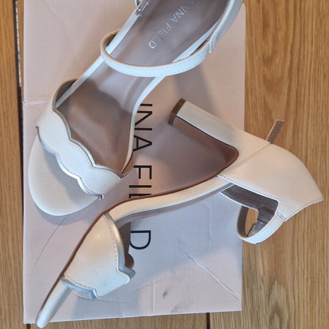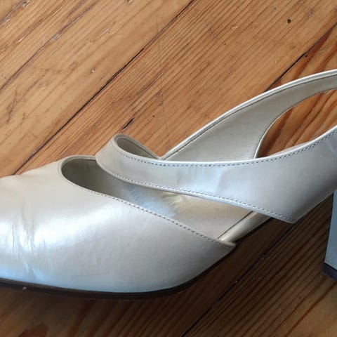 Luonnonvalkoiset kengät, juhlakengät, korkokengät. Koko 6, 38-39.