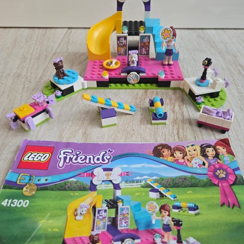 Lego Friends Pentumestaruuskisat -setti. Leikityssä, siistissä kunnossa. Osat tallessa yhtä pientä rusettia lukuunottamatta (näkyy kuvassa). Kyseisiä rusetteja setissä nyt siis neljän sijasta kolme.