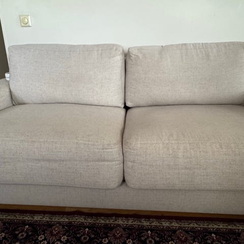 Two seater sofa available for pick up as of 1 December. In good condition but it's a dog home so there is some hair. Cushion cover removable for washing. Pick up in Kamppi area.