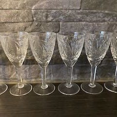 Myydään 6kpl erittäin hyväkuntoisia kristallilaseja. Korkeus 14cm, halkaisija 6cm.