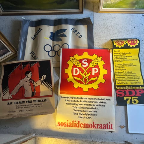 Myydään vanha 70-luvun kotimainen pöytästandaari jonka aiheena Suomen Sosiaalidemokraattinen puolue. Viirin korkeus noin 46cm. Metallinen lipputanko ja aito laadukas italialainen marmorikivinen jalusta, Made in Italy. Esine on hienossa kunnossa. logo pöytä pöytäviiri lipputanko lippu tanko standaari pöytästandaari viirejä sos. dem. sos.-dem. demari demarit punainen pienoislippu pienois taito keltainen punakeltainen taito soihdunkantaja puolue politiikka lippu kyltti kangas kankainen vintage retro antiikki