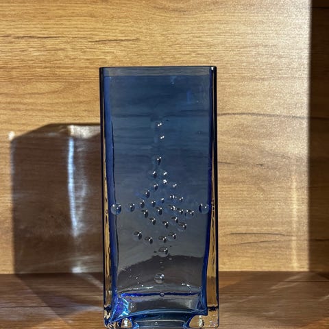 Postittaessa pakataan huolellisesti. Myynnissä myös vastaava maljakko sinisenä.