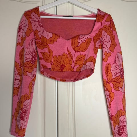 Edessä napit. Halkio edessä. Kukkaprintti. Kunto siisti.