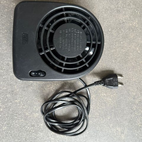 DEFA G9511R 350 W, 230 V AC. Testattu: puhaltaa lämmintä ilmaa, ylikuumenemissuoja toimii.
