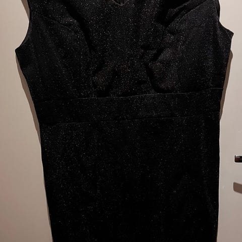 Arkeen ja juhlaan näpsäkkä liivihame. Olen leikannut tiedot sisältävän lapun pois, se lienee ollut rapiseva, joten en osaa sanoa materiaalista. Mekko on helppohoitoinen, silittämättä siisti. Sifonkisomisteet tekevät tavanomaismaisesta vaatteesta erityisen.