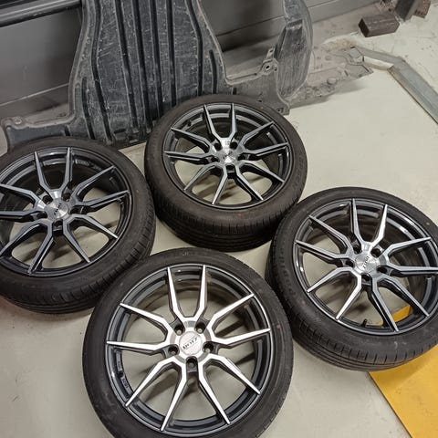 Myydään siistit 18” lippavanteet. Olleet mersun alla joten pulttijako 5x112. Alla kesäkumit, joista 1 puhki.
