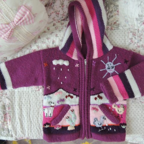 H&M:n ihana nallenkorvilla varustettu neuletakki. Pinnassa ehkä aavistus pesuhaitua, mutta yleisilme tosi siisti. Koko 80.