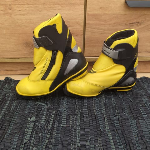 Salomon Igloo SNS Profil monot lapsille, useammalla käyttäjällä olleet mutta edelleen ehjät. Kokolapusta ei saa enää selvää, mutta rullamitalla arpoen sisämitta 21,5cm.