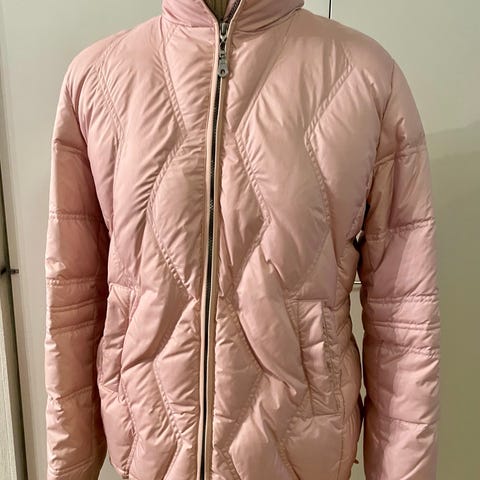 Laskettelu- ja ulkoilutakki ohuella vuorella. Hupussa ja helmassa kiristykset. Isot taskut. Kainaloissa tuuletusvetoketjut. Pientä nukkaantumista molempien käsivarsien alla ja hieman kulumaa hihansuissa, mutta kunto on silti hyvä.Kokolappua ei löytynyt mutta vastaa selvästi S-kokoa.