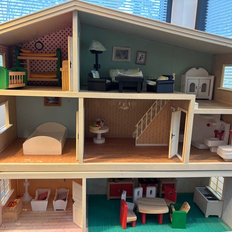 Lundbyn nukkekoti kuvissa näkyvin kalustein.