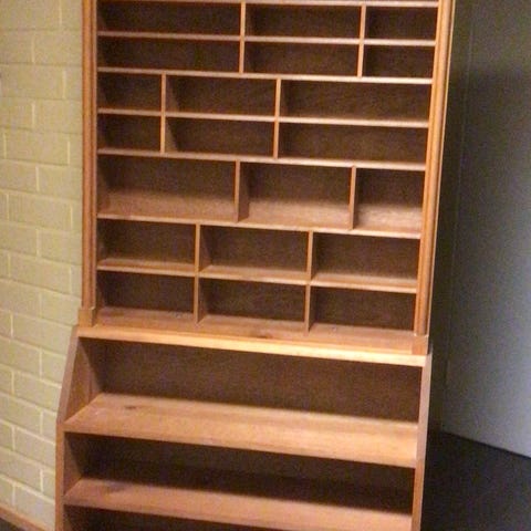 N. 10 mm höylätystä laudasta tehty 28 lokeroinen hyllykkö.