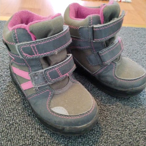 Vuorelliset kengät. Paljon käytetty, edelleen pitäneet varpaat lämpiminä nollan tuntumassa. Kulumaa ja käytönjälkeä löytynee runsaasti, mennee vielä rymykenkinä.