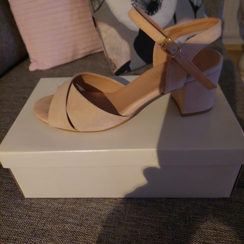 Avoin kärki ja kaunis kukkakoriste. Koko on 40, mutta tosi reilu sellainen. N. 4cm kiilakorko.