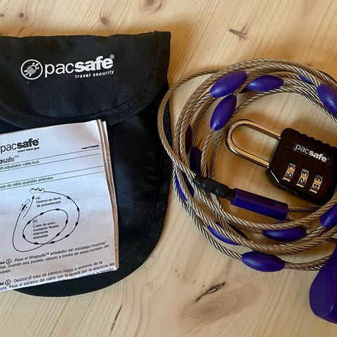 Travelsafe Portable Safe on vahvistettu eXomeshilla, joka on venyvä ruostumattomasta teräksestä valmistettu kaapeliverkko. Päällys on paksua vettä hylkivää polyesteria. Sisävuoraus on revennyt, ei vaikuta toimintaan. Nouto, tai Postin S-paketti 8,90 €. S-paketissa kulkisi useampikin kohde. En lähetä ToriDiilinä.