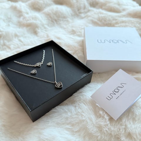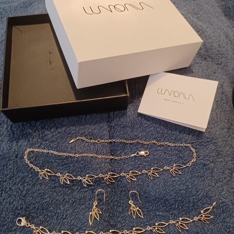 Kuin uusi kuura setti. Muutaman kerran käytetty. Voi ostaa myös erikseen. Rasiat päältä vähän huonon näköiset sisältä siistit. Korvakoruille ei omaa rasiaa. Voi myös noutaa Ilmajoki.
