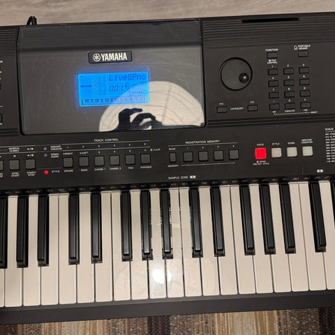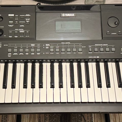 Myydään hyväkuntoinen Yamaha PSR-273 kosketinsoitin teline ja muuntaja.